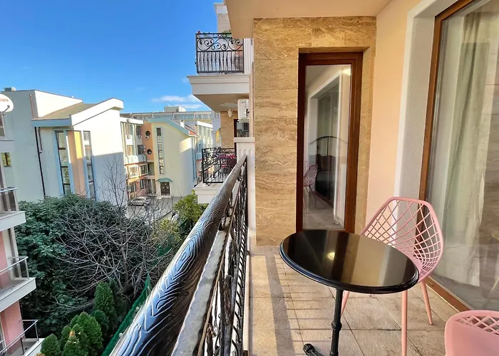 Ao fornecer parque aquático, solário e um terraço ensolarado, o apartamento Valencia Gardens - Private Apartment - Bsr está situado em Nesebar, 4 km de Resort Costa do sol. Praia Chaika fica a 10 minutos de carro deste apartamento.